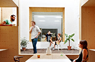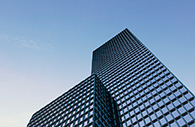 对称的双塔形式呼应城市街角广场空间形成中心对称的视觉效果